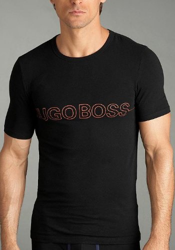 Hugo Boss Style 50152456. Body-conscious crew neck T-shirt. Stretch cotton. Signature logo across chest. Short sleeves.